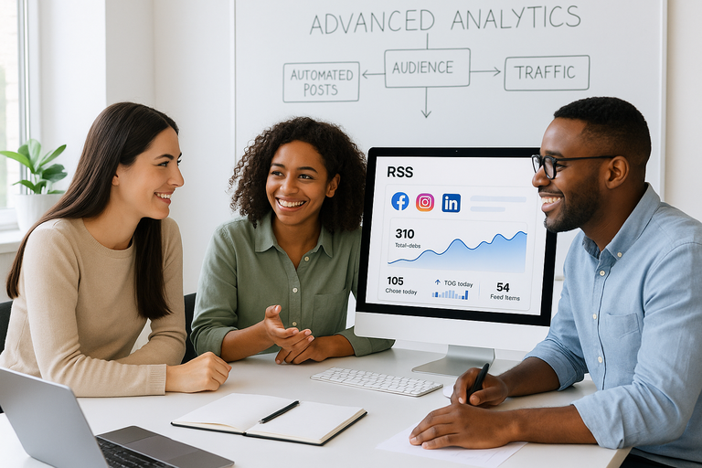 Zamandan tasarruf edin ve hiçbir güncellemeyi kaçırmayın: En son makaleleri, podcast'leri veya videoları herhangi bir RSS kaynağından Facebook, Instagram, X, TikTok ve daha fazlasında, eller serbest ve her zaman planlı bir şekilde anında paylaşın.